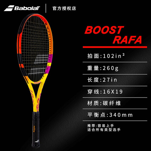 采用椭圆形拍框,有效提高击球的准确度和速度。全碳素材质,让球拍整体牢固,再次提高减震性。舒适手柄,弧形优美,手感通透。