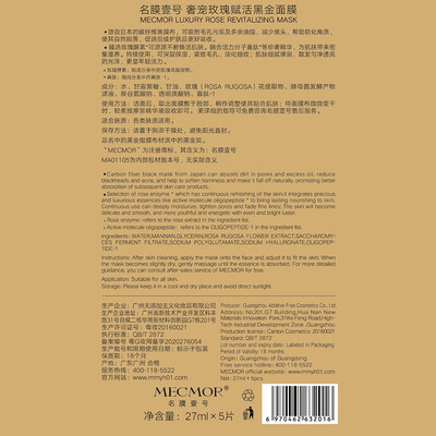 玫瑰花黑金面膜,满载玫瑰精粹和养分,充分补水润泽肌肤让你告别“黑历史”。同时具有淡淡的自然花香,带给你SPA级护肤体验。