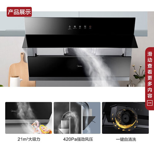 创新采用高压直喷洗科技,一键快速冲刷烟机内部顽固油污,让油烟机更加整洁干净。排烟能力提升26%,油烟不倒灌。