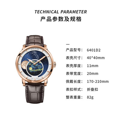 采用人工合成的蓝宝石表镜,具有很高的硬度,有效抗冲击。结合柔软的牛皮表带设计,佩戴舒适,适合商务、休闲等多种场合。