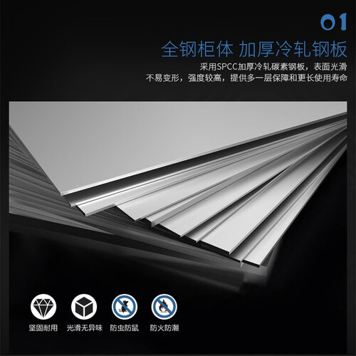 加厚冷轧钢板全钢柜体,表面光滑,不易变形,不易生锈易清洁,精致卡扣设计,可调节层板高度,双面挡书条,合理收纳摆放。