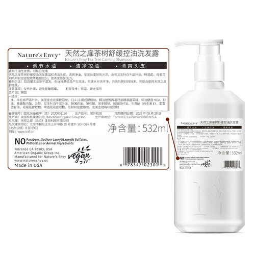 富含茶树精油、辣薄荷油、北美金缕梅叶提取物等10种植物精粹,温和清洁头皮,清爽净油,使发丝柔软有光泽。