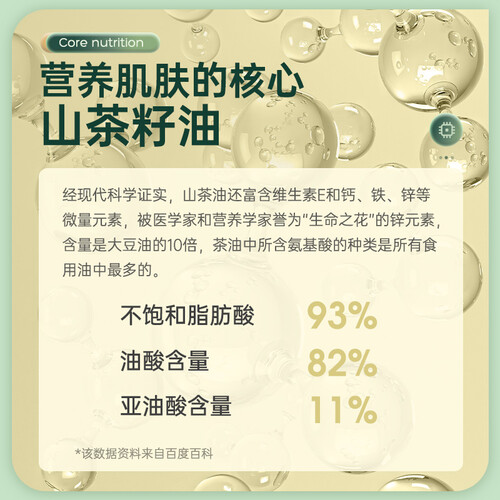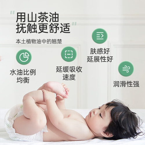 含植物山茶油,成分温和,锁水保湿,使用后可滋养孩子的皮肤。添加维生素E,可给肌肤补充营养所需。