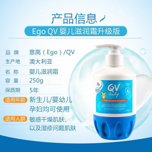 澳洲本土研发的QV护肤品,最大特色是无害、温和,对容易起湿疹和皮炎的宝宝非常友好,可谓有口皆碑的宝妈放心产品。