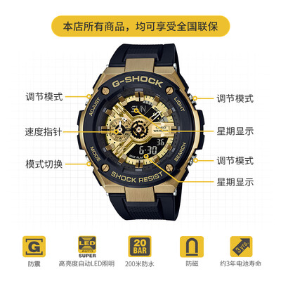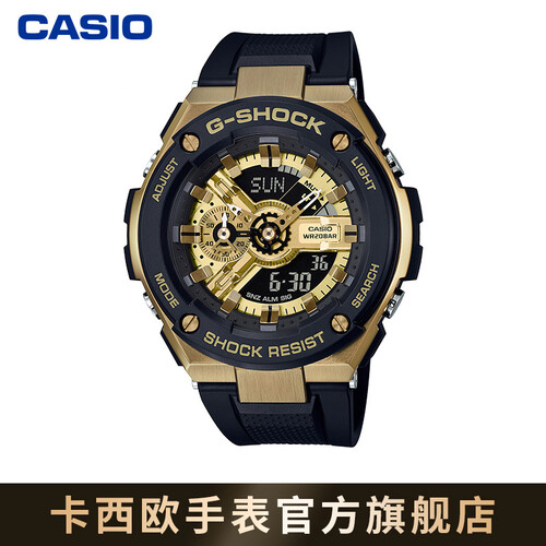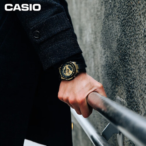 3D立体双显表盘与金色元素点缀,诠释张扬不羁的时尚个性,不锈钢加树脂多层防护结构,秉承G-SHOCK坚韧本质,突破传统。