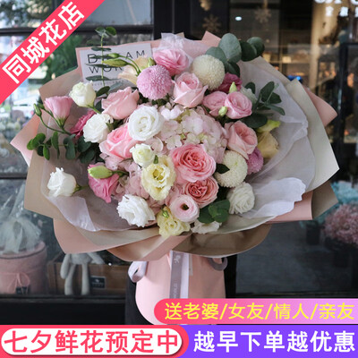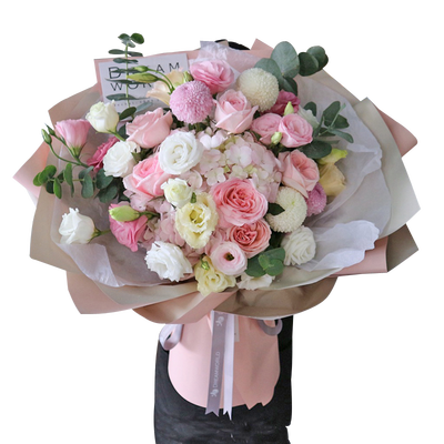 由多种花材组合而成的新鲜花束,色彩缤纷,清新淡雅不落俗,搭配精美包装,轻松展现您的真挚诚意。