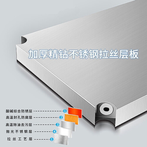 精选高品质不锈钢制作而成,质地坚固牢靠,防腐蚀更耐用。层板边缘采用四次折弯设计,避免划伤双手。