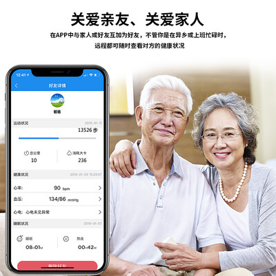 可以检测心率、血氧等健康指标,很适合老人使用,可以及时知道自己的健康状况。IP67的防护等级,游泳时可佩戴。