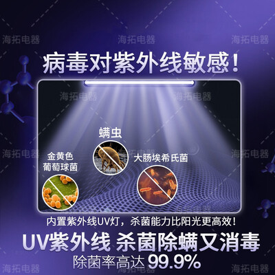 热泵式烘干,42℃低温烘干,衣物平整免熨更护衣。内置紫外线UV灯,紫外线除菌更彻底,全面呵护家人健康。