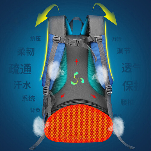 背负系统采用蜂窝透气的结构,有利于吸汗排湿,减少闷热,保证身体的清爽舒适;内部科学分层设计,能够合理有序收纳物品。