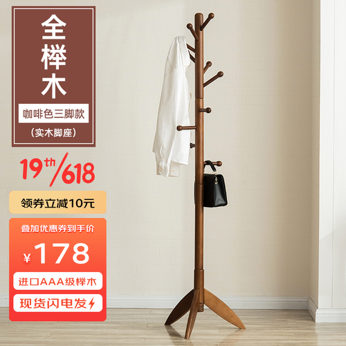 进口树形的纯实木衣帽架,质量上乘,确保家人使用放心。采用400MM加宽大底盘,可以确保衣帽架的稳定。