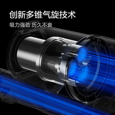 机身仅重1.3kg,手感轻盈无负重感,儿童也能轻松驾驭。搭载多锥尘气分离技术,通过离心力快速分离尘气,不易堵塞风道。