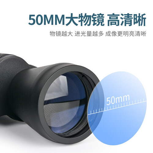 50mm的大物镜,使得成像效果更为清晰明亮,很适合户外探险观景时使用;还带有橡胶保护皮,可使得持握更为稳固。