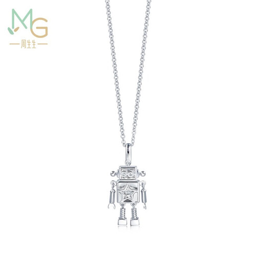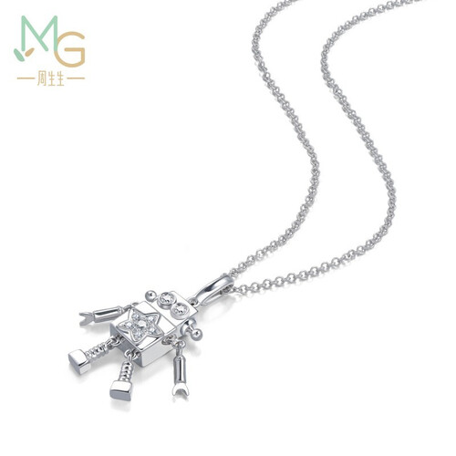 周生生 白色机器人钻石k金项链
