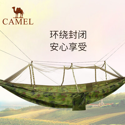 添加了防蚊纱帐,透气性好,还能阻挡外界蚊虫进入。选用迷彩涤纶面料,整体平滑挺括,触感顺滑舒适。