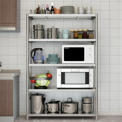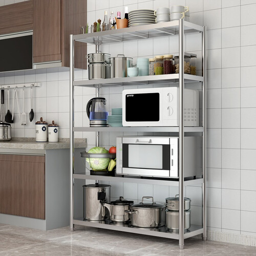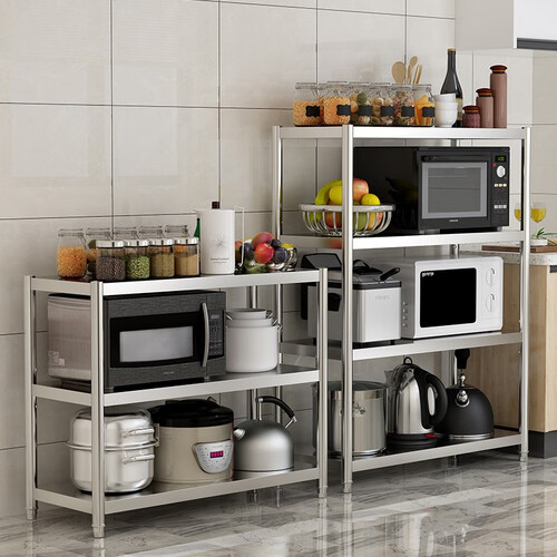 采用食品级304不锈钢板材,光泽亮洁不生锈,使用安全放心。搭配加粗立柱和加厚层板,用料充足,结实稳固。