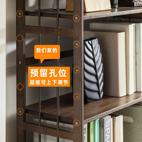 预留孔位设计,可以随意调节层板高度,便于装下各种书籍。精选健康高山楠竹材质,绿色无害,坚韧耐用。