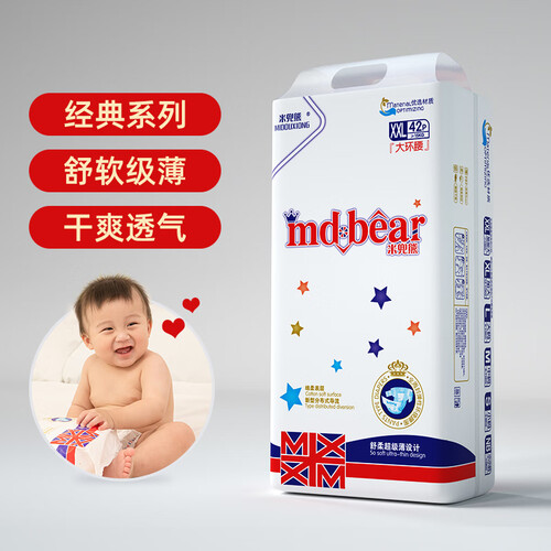 采用高分子组合芯体与吸水因子,吸收量大且锁水好,不易反渗与起坨。高弹大环腰设计,轻柔贴合不紧勒,时刻呵护宝宝。