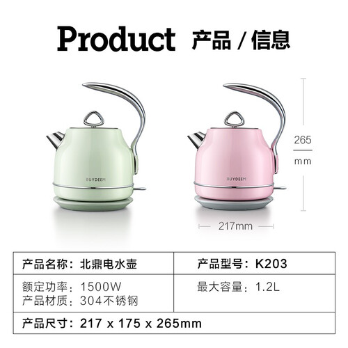 这是一款十分时尚的烧水壶,采用不锈钢的材质,十分耐磨,小巧精致的壶身含有大大的容量,满足全家需要。