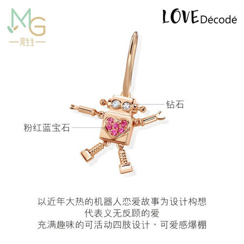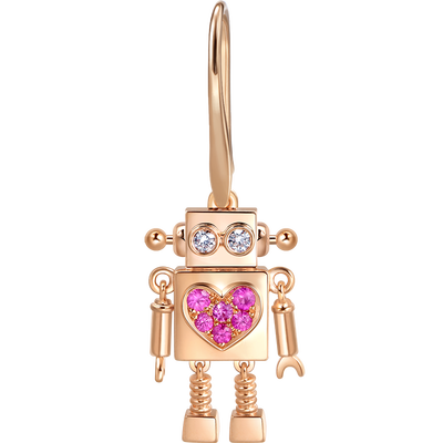 采用机器人外形,设计新颖,精巧美观,时尚别致,可爱感爆棚。粉红色蓝宝石镶嵌心形内里,浪漫华丽,送人更显心意。