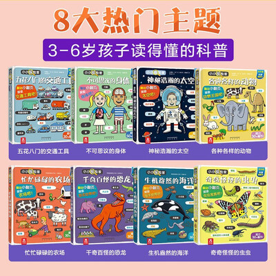 精选孩子们喜爱的科普主题,用翻一翻的立体互动形式,让孩子动手动脑学习,帮助孩子轻松认知事物,培养探索精神。