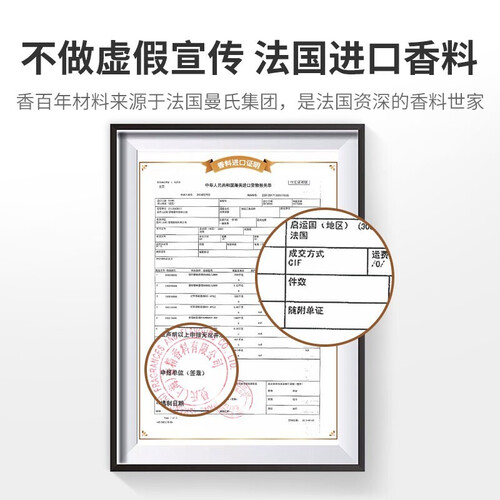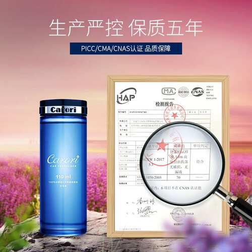 采用法国进口自然香料,能够分解车内异味,清新车内空气。经过滴水测试处理,水油分层不起泡,不含化学物质。