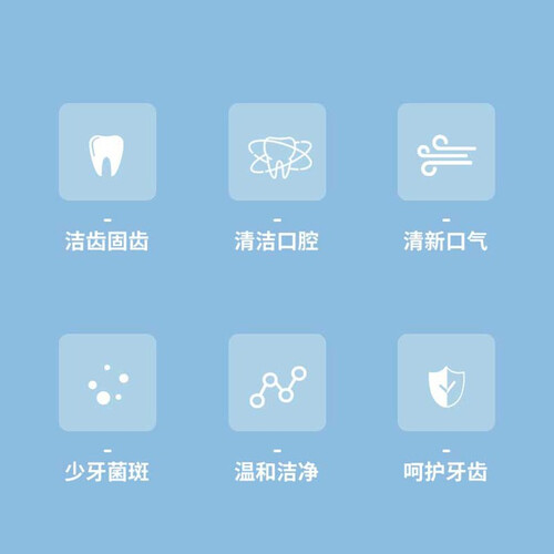 温和的清洁力,可以温柔的清洁牙齿里面残留的各种污渍,洁净细致。具有清洁口腔的作用,能够使得口气更清新。