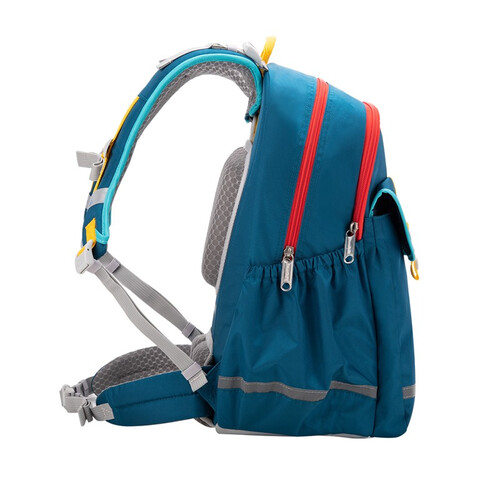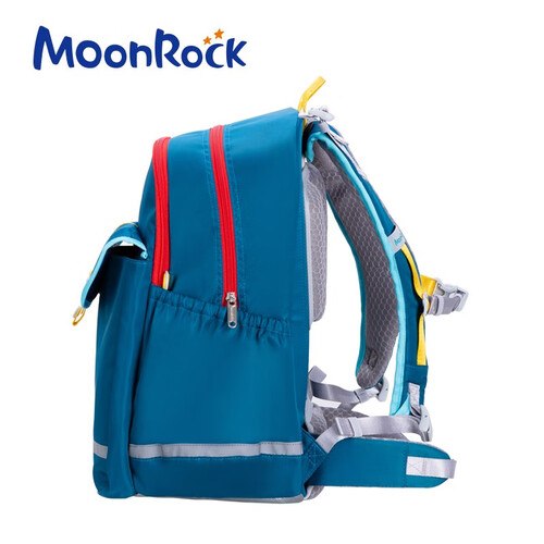 采用专业护脊设计,呵护学童脊椎成长,五点式承托设计,有效将书包重量平均分配于五点,减轻肩部压力。防泼水面料搭配反光条,实用更安全。