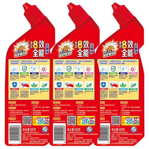 含有高效EA成分的洁厕灵,能够充分深入污垢内部,进而快速清洁马桶表面上的尿垢、水垢等污渍,堪称消除顽垢小能手。
