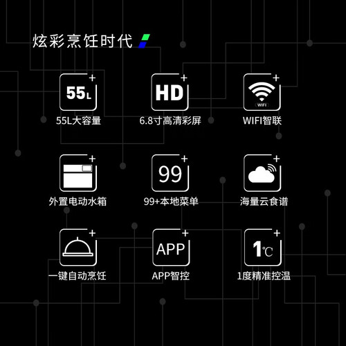 内置MIX高温速蒸系统,腔体升温迅速,美食无需久等,符合快节奏生活步伐。蒸烤一体,加上55L大容量,解锁更多烹饪姿势。