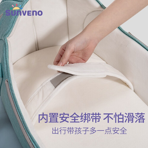 采用仿生环绕设计,提高宝宝安全感,宝宝不哭闹,3D海绵床垫,增加舒适度,内有安全绑带,避免宝宝来回翻身,增加稳定性。