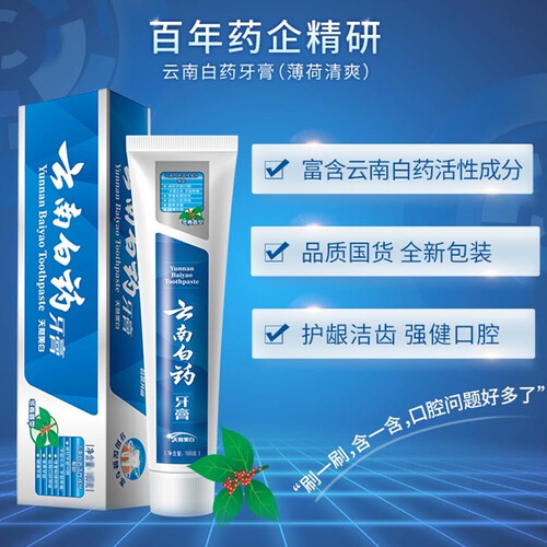 淡蓝色的膏体,很细腻,带来愉悦的刷牙体验。添加云南白药活性成分,减少牙龈出血、肿痛等问题,告别牙敏感的不适。