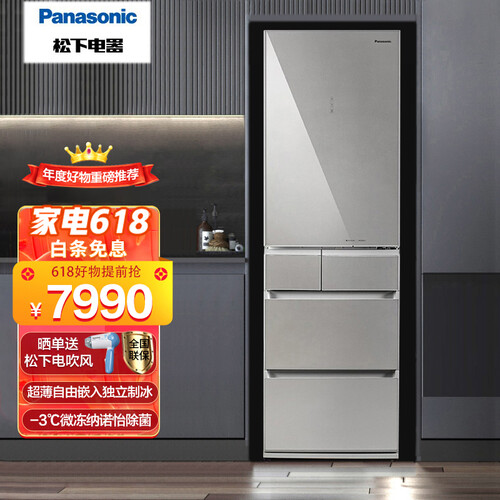 松下 无边框自动制冰冰箱