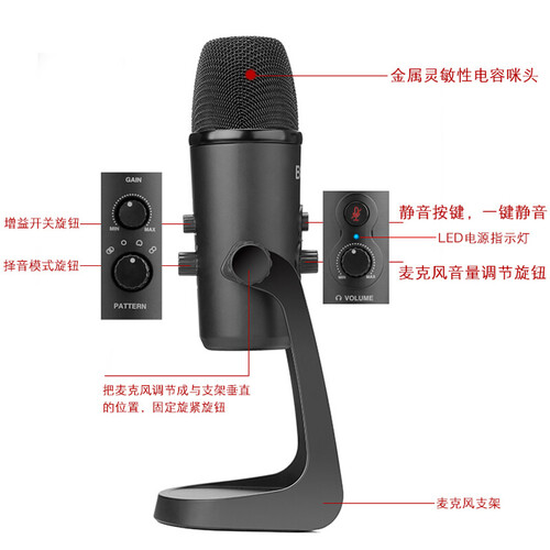 具有四种拾音模式,可以根据不同的录制场景任意切换,简单方便,同时还配置了耳返监听接口,可以实时调整录制音效。