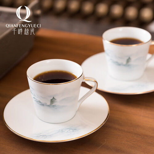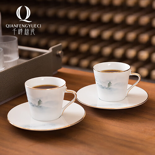 千峰越瓷 金边设计 咖啡杯