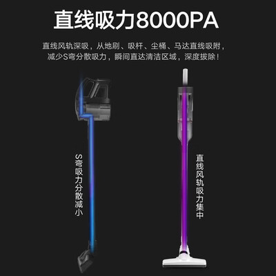 铝合金属外壳,坚固耐刮擦,经久耐用。直线风轨设计,可减少S弯,避免分散吸力,确保其清洁效果。