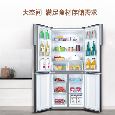 可调节搁物架,百变空间,大体积食材也能轻松存放。90°直角悬停门,不受墙角束缚,居家灵活摆放。