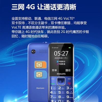 飞利浦手机采用大喇叭,立体环绕声响,让父母不错过每一个来电,听清每一声问候和祝福,时刻感受到关心。
