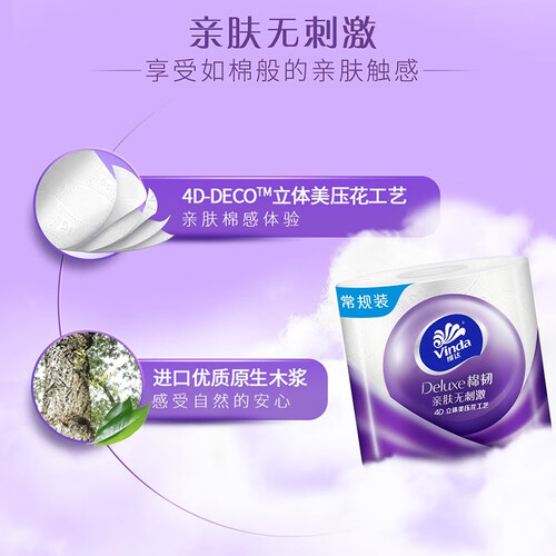 精选进口优质原生木浆制作,原材安全更健康,使用安心更放心。内含立体绒点,提升使用亲肤度,远离伤肤烦恼。
