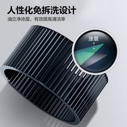 深腔拢烟,搭载涡轮增压技术,排烟快人一步,防止倒灌。内腔采用油脂分离涂层,不易附着油污,保持稳定运转,免拆洗更省心。