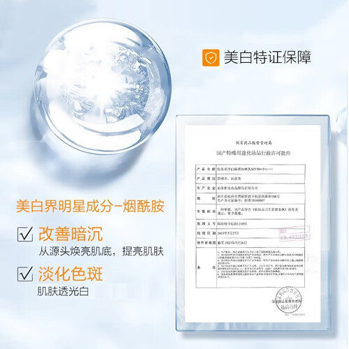 添加烟酰胺成分,从肌底焕亮,阻隔色沉,打造瓷白美丽肌肤。有着轻盈质地,轻薄推开易吸收,不油不腻不闷肤。