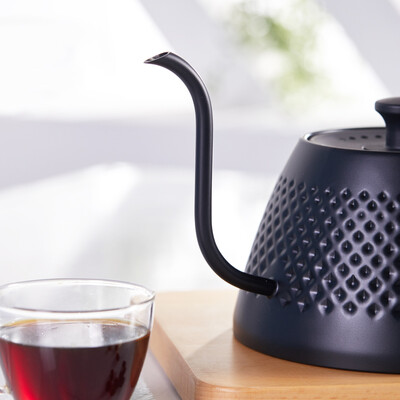 壶身采用304不锈钢铸造,结合钻石纹工艺,美观有格调。鹅颈式壶嘴设计,搭配7mm细长出水口,容易把控流量。