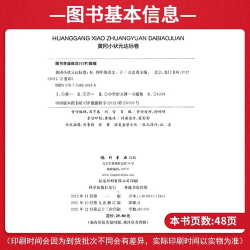 龙门书局 黄冈小状元达标卷