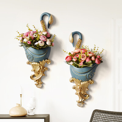 天鹅造型用以金属点缀,给人一种北欧的轻奢感觉。花瓶设计,挂在墙上既节约了空间,插上鲜花又增加了浪漫的味道。