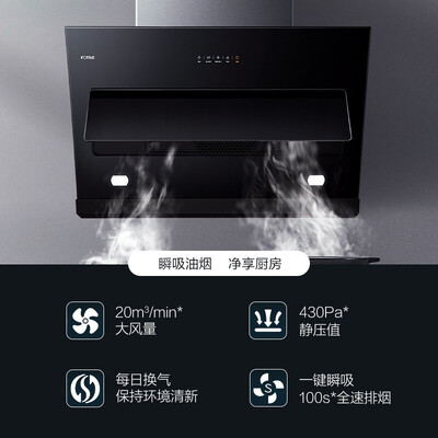 采用强劲电机,带来20m³/min大风量,厨房净烟更迅猛。自动隔烟屏,有效防止油烟扩散,随心爆炒不呛鼻。