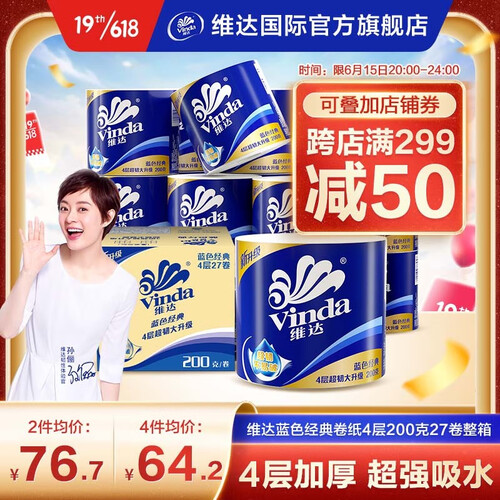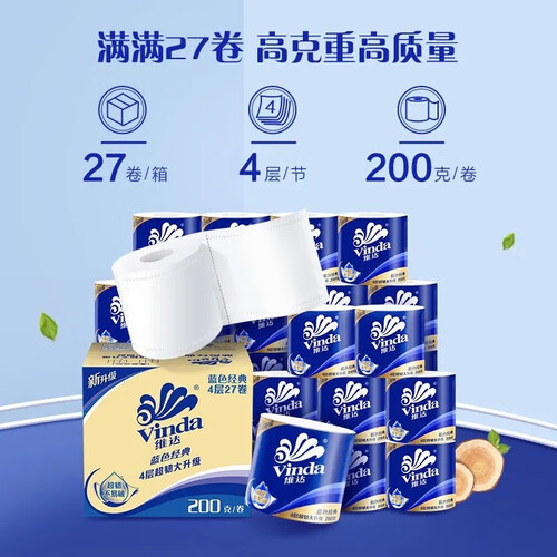 维达蓝色经典卷纸,4层加厚韧性再次升级!强韧不掉絮的紧实纸质,摸得到的柔软,用起来十分亲肤,享受健康好生活。