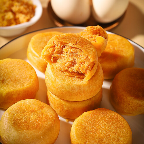 脱皮绿豆加黄金肉松,饱满的肉松咸甜适中,外皮酥香可口,可做办公室茶点。