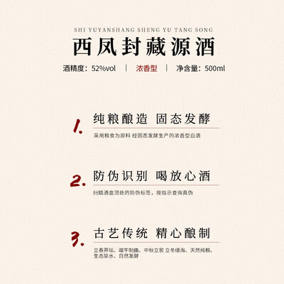 挑选优质高梁、小麦原材,酿造出酒的品质上乘。科学配比清澈的水源,确保酒体纯净无杂质,入口尽享饱满醇香。
