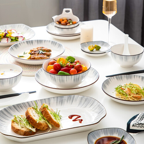 高温煅烧而成,硬度高,经久耐用,瓷质温润,整体看起来时尚大气。素净的线条描绘盘面,给人一种温润的质感。