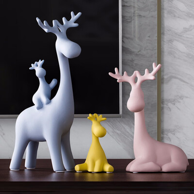 整体造型为麋鹿,颜色为马卡龙色,看起来清爽靓丽,让人感到舒服安逸;整体采用陶瓷材质,质感光滑且细腻。